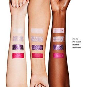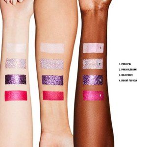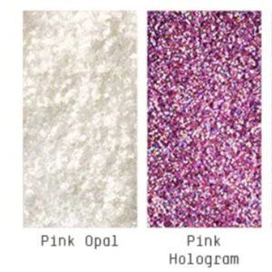 4 shades: Pink Opal, Pink Hologram, Heliotrope, Bright Fuchsia