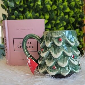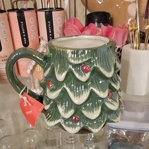 Hard to find brand new with tags christmas tree mug with an iridescent green gloss! Handpainted! Viral Coffee mug features a green handle and red pearls throughout the tree. Ceramic! Anthropologie dupe, but cuter!!