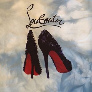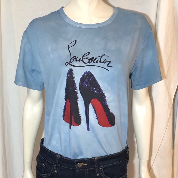 Fun, trendy novelty T-shirt with spike heel shoe caricature.