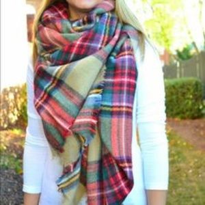 Tartan plaid Blanket Scarf. Oversized. 100% acrylic. Multi/tan. First 2 pics are not actual scarf, just very similar. Third pic is of actual plaid. Just like the Zara version. A blogger favorite!