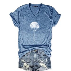 Last Ones ~NEW Washed Blue Dandelion V Neck Tee