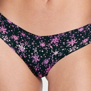SEXY ILLUSIONS BY VICTORIA'S SECRET No-Show Thong Panty Color: Black Snowflakes (Black with Pink Snowflakes) 1 Thong Included. Bra is not Included. See Comments for 2/$20 Info. NWT: May have tag or VS packaging or both VS Pics & Description Smooth, seamless and forever comfortable—this barely-there thong is complete with raw cut edges that are nearly invisible under the tightest clothes, even leggings. Low rise Smooth moisture-wicking fabric Cotton panel gusset No back coverage Perfect for workouts and pairing with activewear Machine wash Body: 82% Polyamide, 18% Elastane Gusset: 100% Cotton Christmas X-Mas Holiday panty panties thong thongs g-string gstring g string no-show noshow no show snowflake snowflakes snow flake flakes black white stretch stretchy comfy comfortable lady lady's ladies ladies' woman woman's women women's girl girl's girls girls' present gift festive fun cute adorable