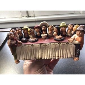 Last Supper Apostles Jesus Pottery Peruvian Religious FolkArt Figure DecorEaster