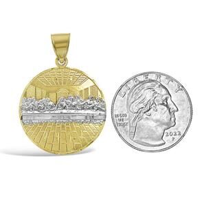 Last Supper Round Pendant 10k Two Tone Gold Charm 1.4 inch
