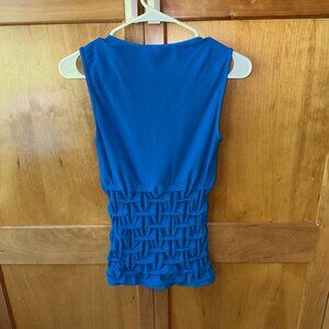 Last Tango Puckered Scoop Neck Seamless Top. Cobalt Blue color. Puckered scoop tank has so much detail on it, that you can pretty much wear it for any occasion. Bra-Friendly Scoop , High Back, Reverse Pleating, Seamless Fiit. 92% Nylon 8% Spandex. Excellent pre-owned condition. No known flaws. No holes, stains or snags. Bright color. Size S/M.