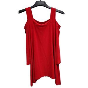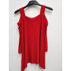 Last Tango Womens Tunic Top Large Red Cold Shoulder Sharkbite Holiday Glam