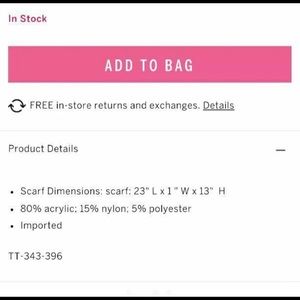 Victoria's Secret Hat & Scarf Set. Victoria's Secret scarf and hat are ivory with rhinestones. Infinity scarf measures 23" x 12" and they are incredibly soft. Brand new and suitable for gifting. Thanks!