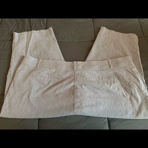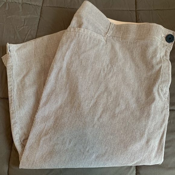 Woman’s Studio Works size 24W navy and white striped crop pant. Wide comfort band waist. Zipper fly with navy button, front pockets and back faux pockets. Side vents at the bottom hem. Perfect for summer! Excellent used condition. Smoke and pet free home. Shipping on Wednesdays and Saturdays only. Thank you for shopping my closet!