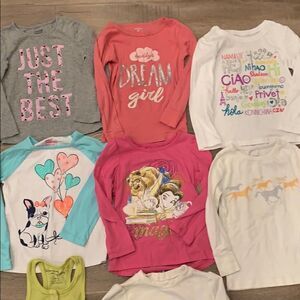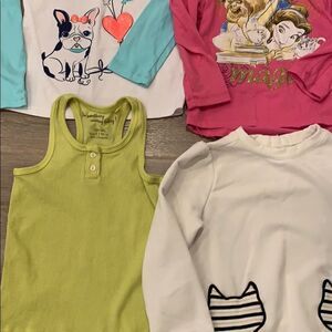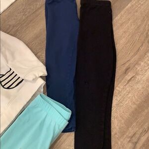 Used ... different brands Gap, epics, Gymboree, 1st 2nd layer tops are very good condition, Gymboree sweater has front and back stain but can be removed, legging - black has small hole , bye has stain other blue is good .
