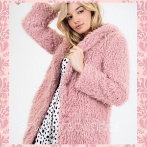 Last one!! Dusty Rose Sherpa Fur Longline Jacket