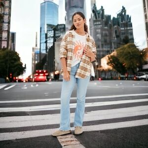 This 100% cotton flannel-jacket features colors inspired by the trendy Pantone shade of the season, Mocha Mousse. Perfect for layering and effortlessly elevating your outfits!