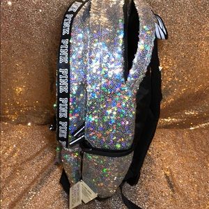 Brand new with tags Victoria’s Secret PINK SEQUIN campus back pack COMFY PADDED STRAPS EXTERIOR ZIP POCKET