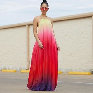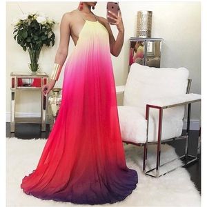 Haltered ombré maxi dress. Lined 100%polyester. Flows well.