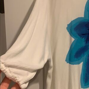 New never used !!! Super cute blouse . Has 2 big flowers with sparkles. Off the shoulder if you see the picture u can tell //runs big like a medium/large