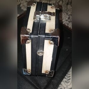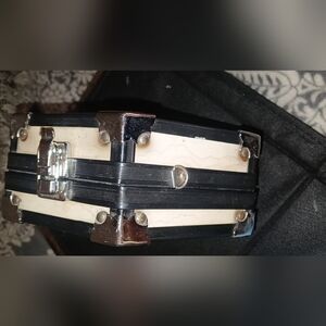 small latch bag with portrait vintage some aging black interior all hardware and latch works