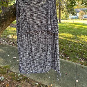 One of my favorite pieces to wear for the two years I nursed my daughter! It is long and great to wear with leggings if you want a little coverage over your hips. Also has a drawstring at the bottom if you want a little cinch. Has a panel over the chest for nursing access. Also built for a pregnant body with plenty of stretch and give in the waist.