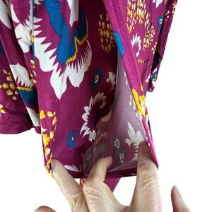 Magenta floral pattern with cream, blue, and golden yellow accent colors
