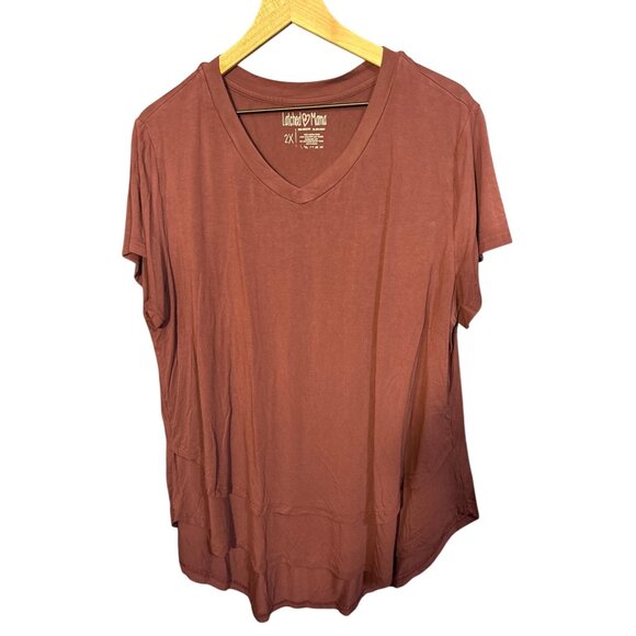 Latched Mama Nursing Top 2X Viscose & Spandex V-Neck Short Sleeve Plum