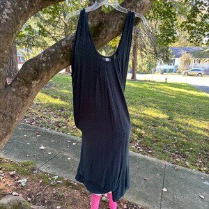 A nursing friendly romper with pockets! It's so flowy and forgiving that it's almost a dress. One of my favorite pieces to wear for the two years I nursed my daughter! It's play friendly, but also nice enough to dress up for a wedding. It is super easy to go to the bathroom in too, just step one leg over into the other leg hole and pull up like you would a dress. Also built for a pregnant body with plenty of stretch and give in the waist.