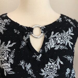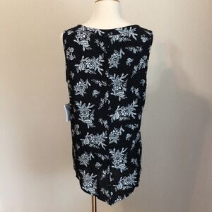 Late August Size L Rayon Black Floral Print Sleeveless Top NWT