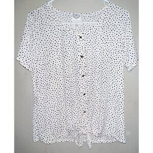 Late August White & Black Polka Dot Button-Up Blouse V-Neck Short Sleeve Tie Fro