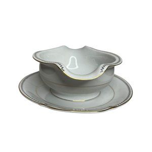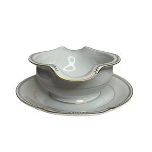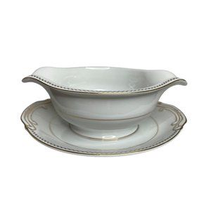 Late In Autumn Gravy Boat Attached Plate By Fine China Of Japan Gold Gild Trim