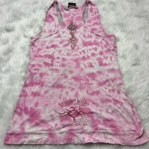 Late Y2k Harley Davidson pink tie dye tribal print tank top size L