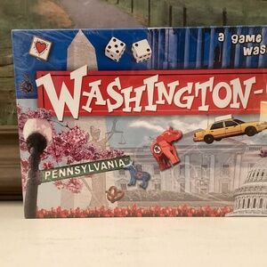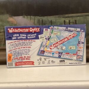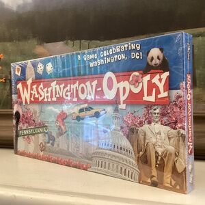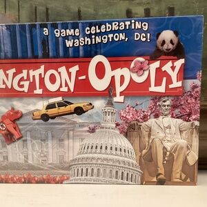 New, sealed game Washington-Opoly celebrating Washington DC. 2-6 players, ages 8+. Great family monopoly-style game.
