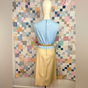 Late 1960’s Kay Windsor Sky Blue, Beige and Orange Poly Dress and Jacket Set