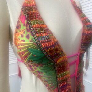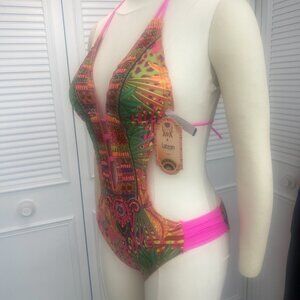 Lateen Rare South American New Brilliant Hand Beaded One Piece Swimsuit cut out Size S-M . On Mannequin 39" bust and 39" hips. Gorgeous sexy swimsuit. I own another of this item in same colors. Just do not need two. I love their swimsuits. Feels like a Brazilian swimsuit fit and design. This design is no longer sold. Hit the beach or pool and turn heads. People will stop you and ask brand and where you bought it. Made in Colombia and Peru, with some also originating from Mexico, Puerto Rico, and other Latin American countries. Colombia is particularly known for its skilled designers, seamstresses, and artisans who create high-quality swimwear with attention to detail and stylish trends.