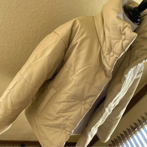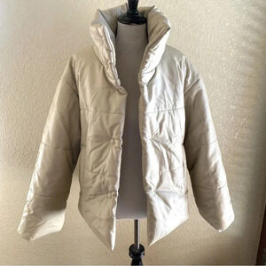Latellier Faux Leather Puffer Jacket Oversized Quilted Cream Mid Length: Large
