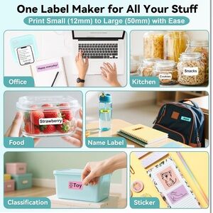 Brand new, Label Maker Machine with Tape - Inkless Mini Bluetooth Label Printer with Multiple Templates, Wide Waterproof Labels, Portable Thermal Sticker Labeler for School Home Office Kitchen Organization