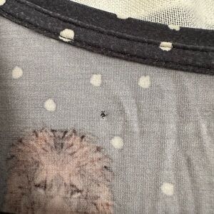 Good used condition, 2 tiny holes shown in pictures on back of shirt. Otherwise in good condition!