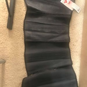 Classic black waist cincher in natural latex. 2 Hook and eye closure, internal cotton cover, with flexible metal spiral boning for back support, posture corrector. Complete torso covering.