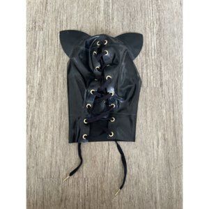 Latex Hood Open Eyes Mouth Women's Black Rubber Back Lace Full Face Mask Cosplay.