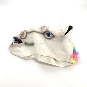 Latex Rainbow Mohawk Unicorn Mask Full Head Animal Mask Adult Horse White OS