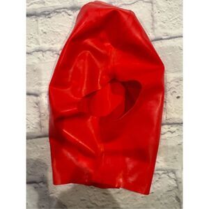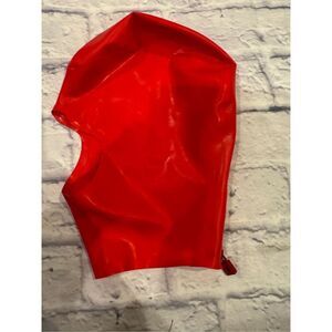 Latex hood open mouth face red size small BDSM fetish rear zipper euc