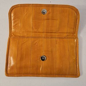 Latico Genuine Eel Skin Leather - Envelope Clutch Purse Orange Mustard New $175 Mustard is the color for Fall! This clutch is so stylish for a night out or a secondary bag tossed into your big bag. Nice Eelskin Leather.