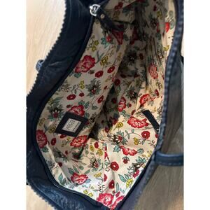 Latico Nora Navy Blue Leather Tote Shoulder Bag Zip Closure Scallop Edge