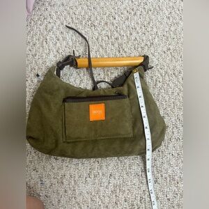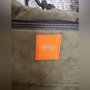 Excellent condition Latico versatile olive green suede handbag with a stylish wooden handle. Perfect for any occasion. Unique piece. Smoke-free home
