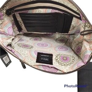 Brand new Latico Dee Dee shoulder bag. Colorblock style. Exterior zip. Notched salmon pocket with magnetic closure and removable small zip pouch that fits in the pocket. Colorful roomy interior. Credit card slots, zip pocket, and pen holder. Rolled leather strap. Espresso and salmon color.