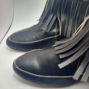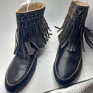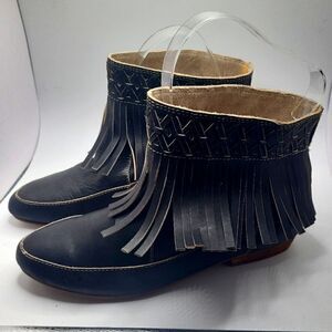Latigo Anthropologie Jig Adobe Black Leather Fringe "Moc" Ankle Boots 7.5M $137