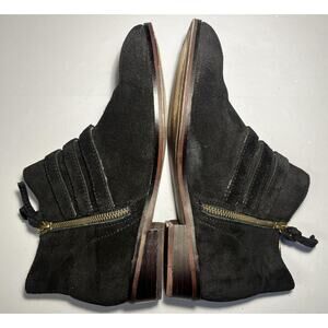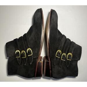 Notes: Classic suede ankle booties with decorative straps, easy on/off zipper, and versatile everyday style.