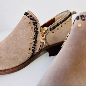 Gilded studs and shimmery whipstitching dress up a casually stylish suede shootie made with a soft cushioned insole for all-day comfort.