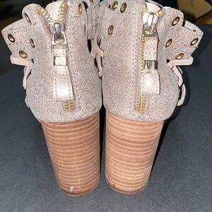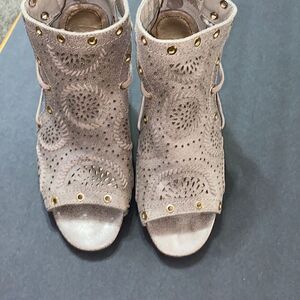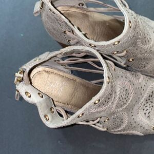Latigo leather Karlena block heeled embellished peep toe sandals