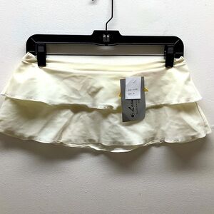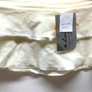 Chic mini skirt with a layered design. Soft and stylish for versatile wear. Latin Angel Cream Ruffle Danceskirt/Swimsuit Cover Up Skirt. New With Tags