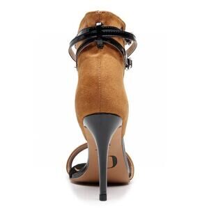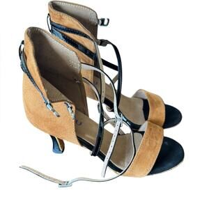 Latin Salsa Bachata Burju Open Toe High Back Heeled Sandals Brown/Black Size 6.5