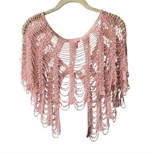 Latina Life Elegant Pink Metallic Festival Cropped Crochet Front Tie Shawl L/XL