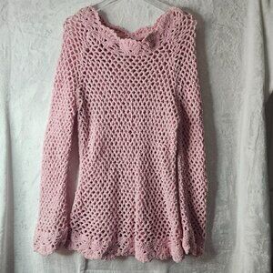 Latina Life Women Sweater Pink Chunky Knit Long Sleeve Eyeleted Size M