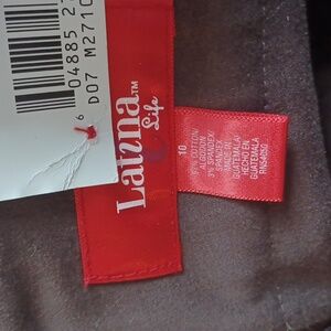 Latina life brown casual pants, 10 short, nwt, back zip, fluted waist
